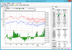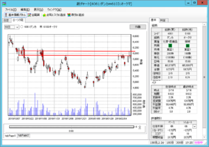 また、期間90日でみると、ほぼ高値圏とみることができ、下げをきたいできます。但し、上限をレジスタンスラインを6100円に設定して越えたら手仕舞いと考えています。