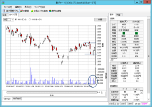 一方、デンカは直近(1ヶ月間くらい)の中ではそこそこの出来高を維持、このまま上昇を期待します。